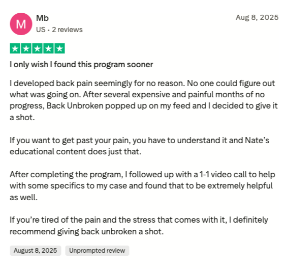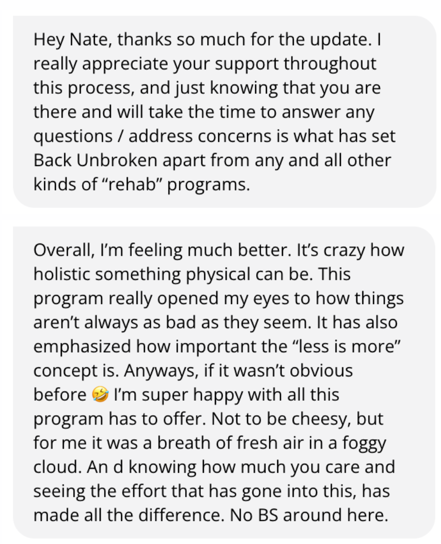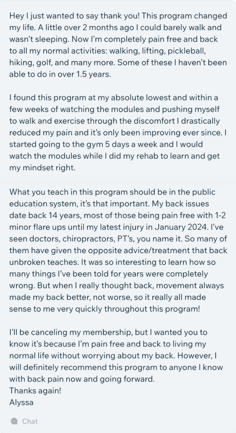 This page isn't here to brag or convince you to join BackUnbroken. It's here to show you what's possible. To show you that there is a way out of pain, even when you feel like you've tried everything.